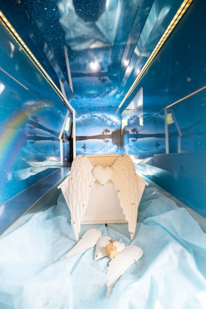 Immer wieder bestand der Herzenswunsch von Trauererltern ihr Kind auch auf der Reise mit dem Bestattungswagen persönlich begleiten zu können. Mit einem Standard Bestattungswagen ist dies nicht möglich.